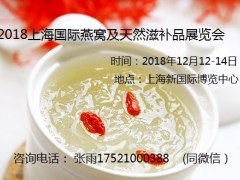 2018上海国际燕窝及天然滋补品展览会将于2018年12月12-14日在上海新国际博览心隆重召开,本次展会是由上海市现代食用农产品交流促进中心与上海仪诺展览服务有限公司共同主办的,旨在推动燕窝产业健康、高速发展。燕窝展汇聚印度尼西亚、马来西亚、新加坡、泰国等东南亚及海南省等原产地的最优质的燕窝精品和最优秀的企业集体展出,专业性极强,规模宏大,工商共赢,本届展会将通过多渠道全方位的媒体宣传,本届活动以产品展示、贸易洽谈、商务交流的国际性行业盛会;